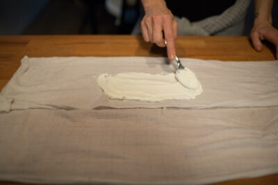 • Baum­woll­tuch als Zwi­schen­tuch (am bes­ten ein we­nig grö­ßer als das In­nen­tuch)